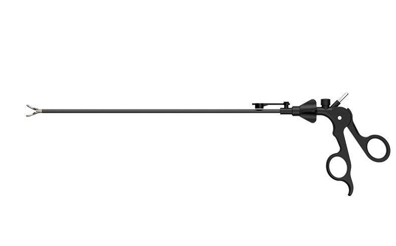 During surgery, this instrument is used for tissue dissection under endoscopic guidance.